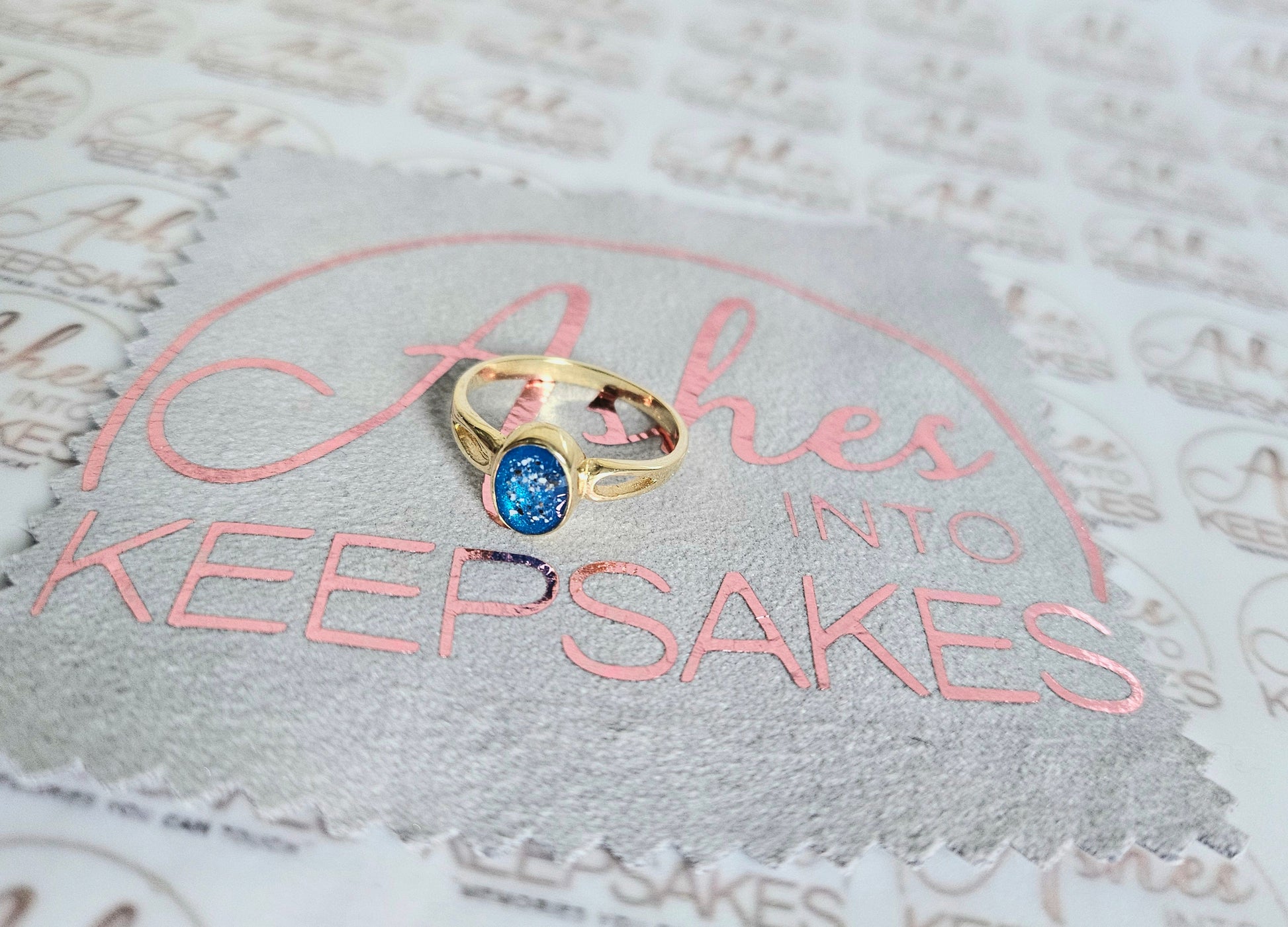 Each ring is hand crafted to order and we estimate all 9ct gold orders to take around 5 to 8 weeks in some cases gold may take as long as 10 weeks this is simply because they are custom made to order, if you require gold sooner please contact uspriorto ordering to check stock.All items come with authenticity certificate with your loved ones name on. Once you have placed and order with Ashes into keepsakes we will send out a pack for you to send your ashes, hair or pets fur back to us, any unused will be returned to you with your order.