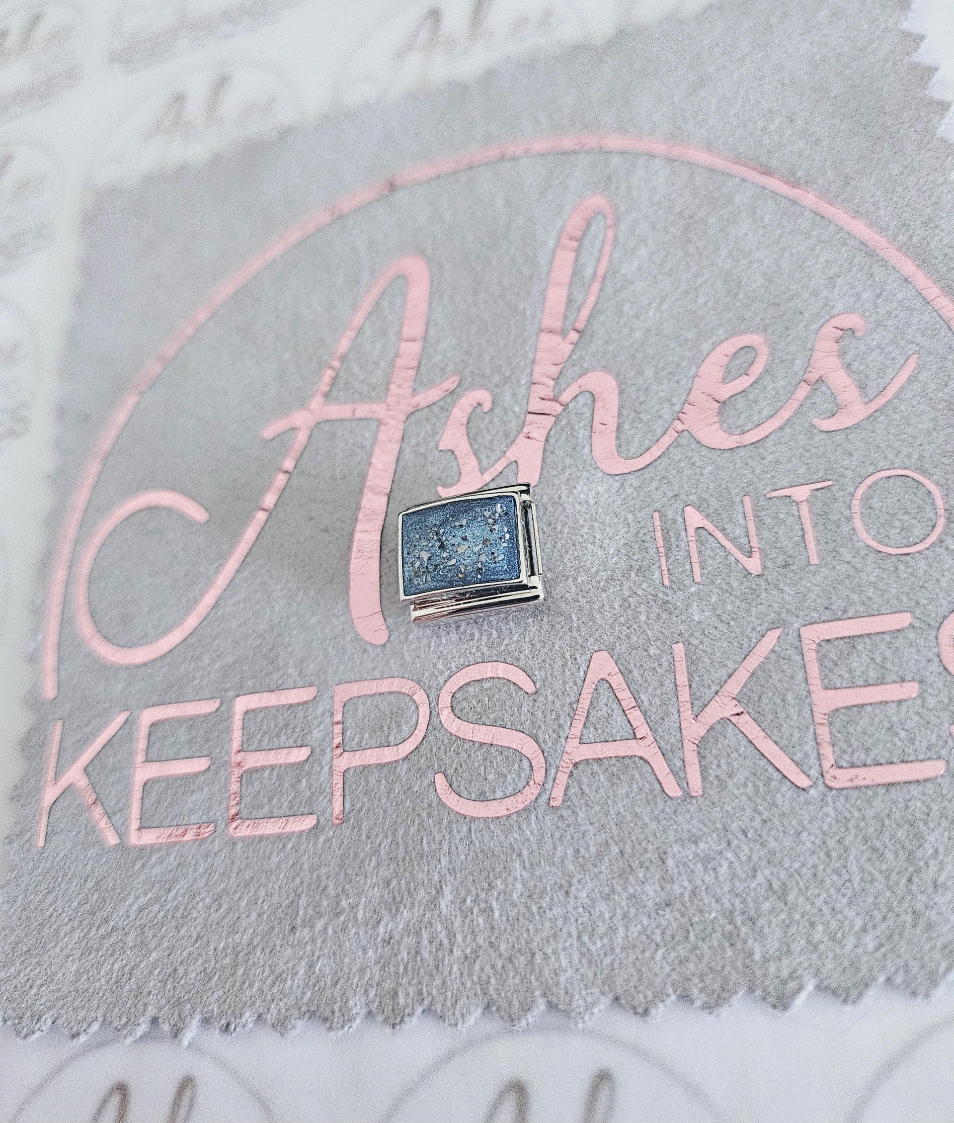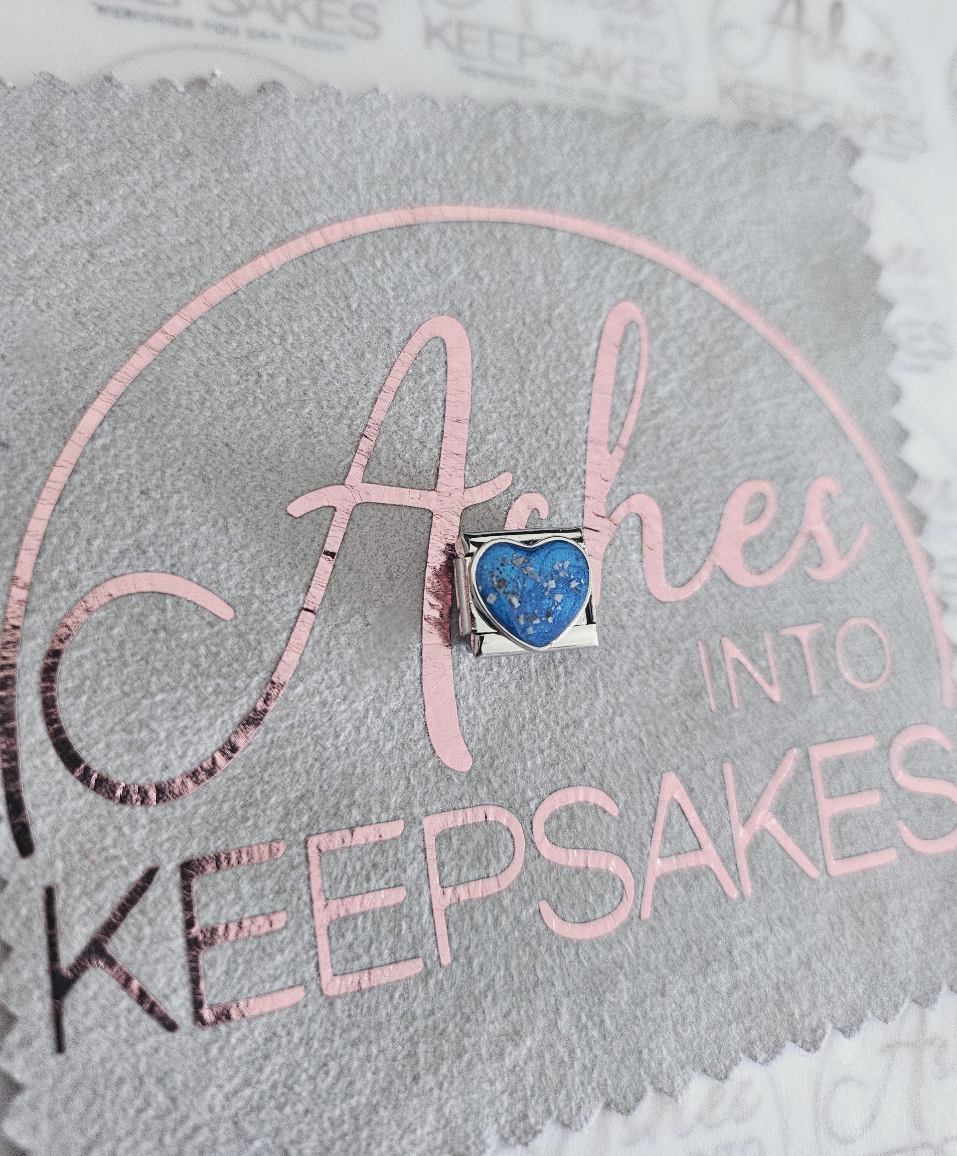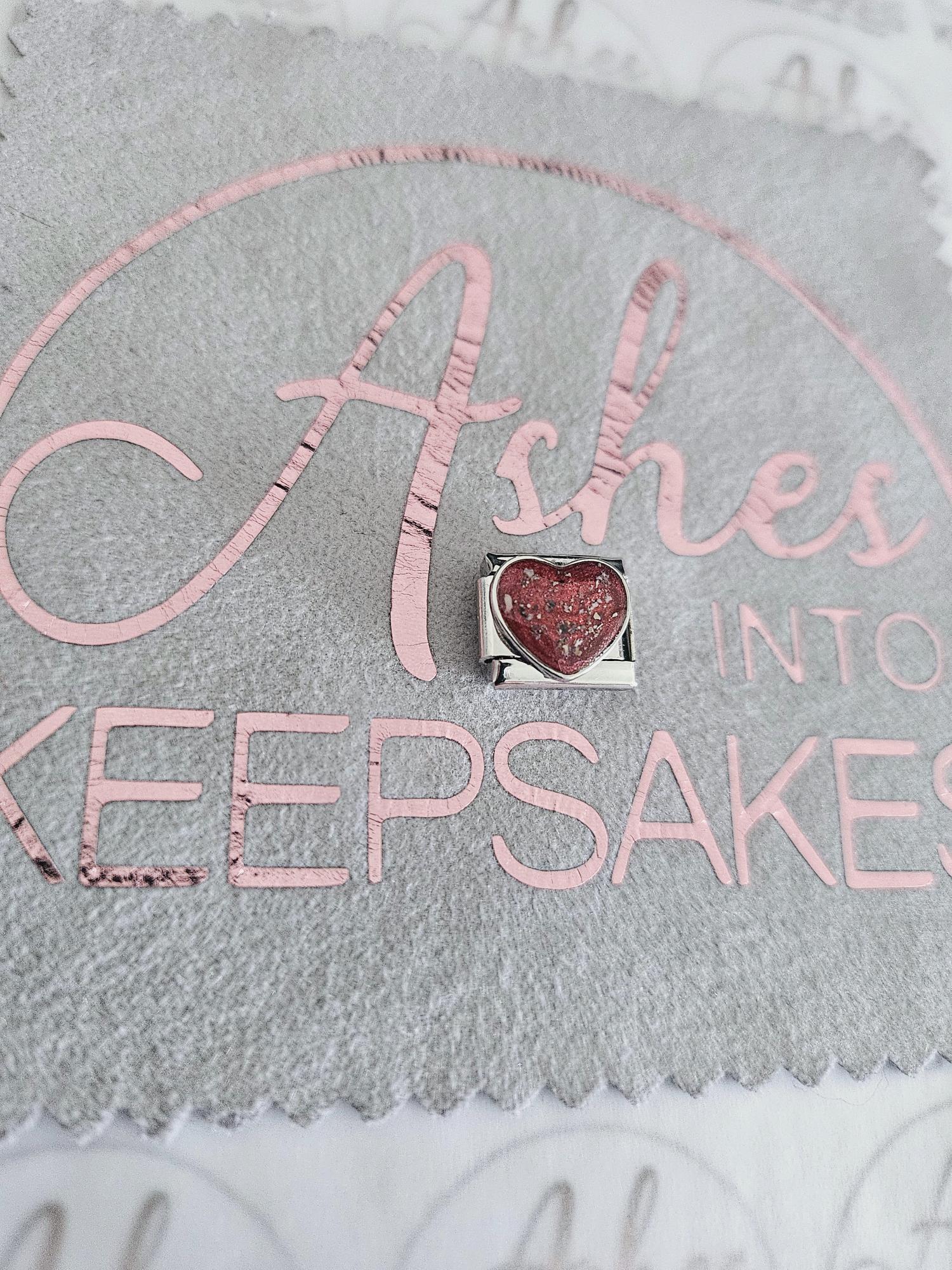 Italian Charms fit nomination bracelets, choice of circle, heart or rectangle. These are simplistic and elegant for everyday wear. Comes in a choice of colours and can include your loved ones ashes, hair or pets fur. Add a touch of extra sparkle with the option of real diamond dust added to your jewellery, this is placed in the top layer of the stone and adds a subtle sparkle. Please note this is the charm only and no bracelet. Each charm is hand crafted to order and we estimate all orders to take around 3-5 weeks from receiving your ashes or hair. All items come with authenticity certificate with your loved ones name on. Once you have placed and order with Ashes into keepsakes we will send out a pack for you to send your ashes, hair or pets fur back to us, any unused will be returned to you with your order. The completed product will be expertly buffed to create a mirror shine finish, and due to the range of colours we have to choose from no two resin gems are ever the same. Ashes into keepsakes is committed to each one of our customers to provide the best service and care. Your loved ones ashes, hair or even pets fur will be handled with the utmost respect and care, and any unused will be sealed and returned to you with your order.