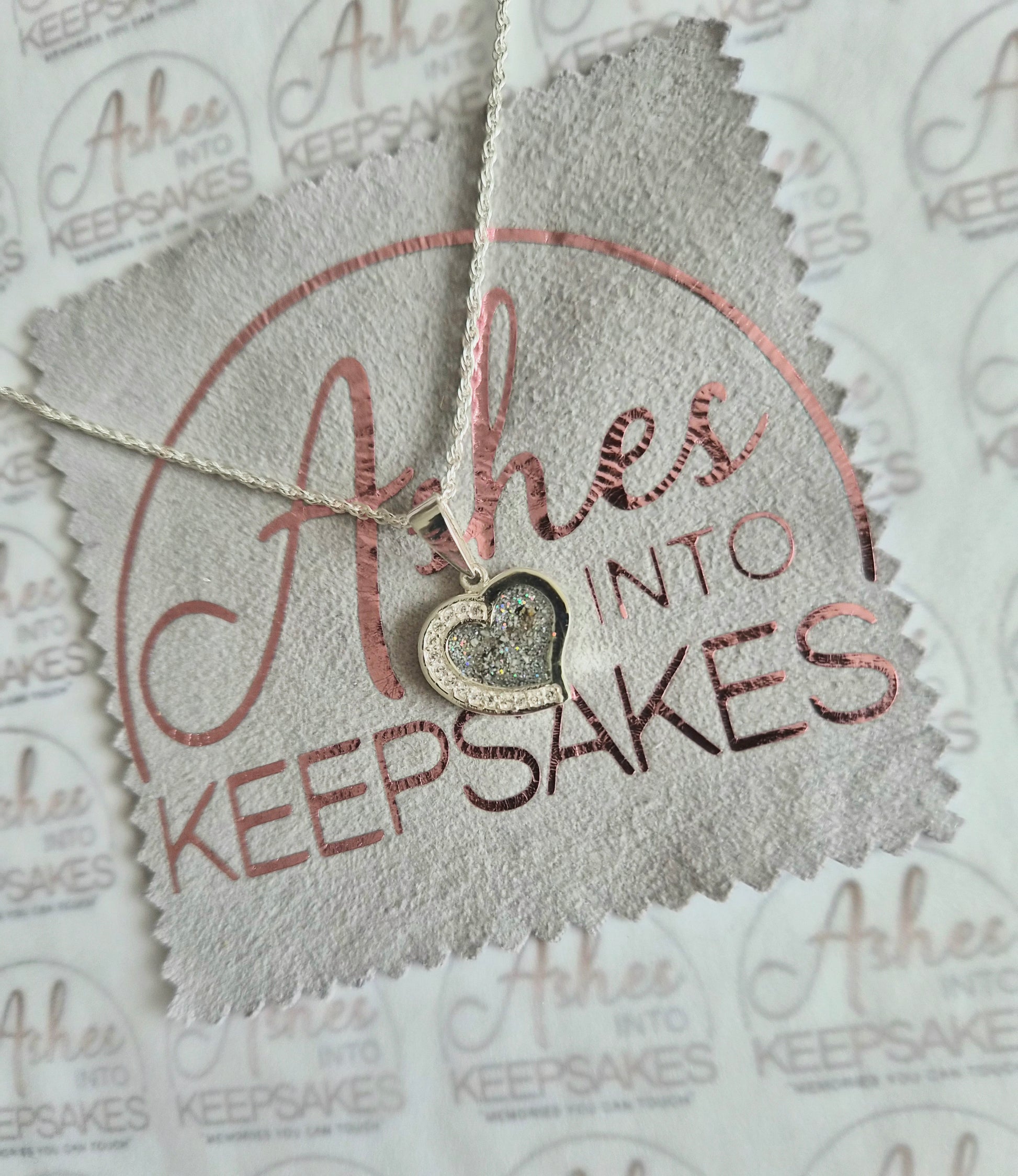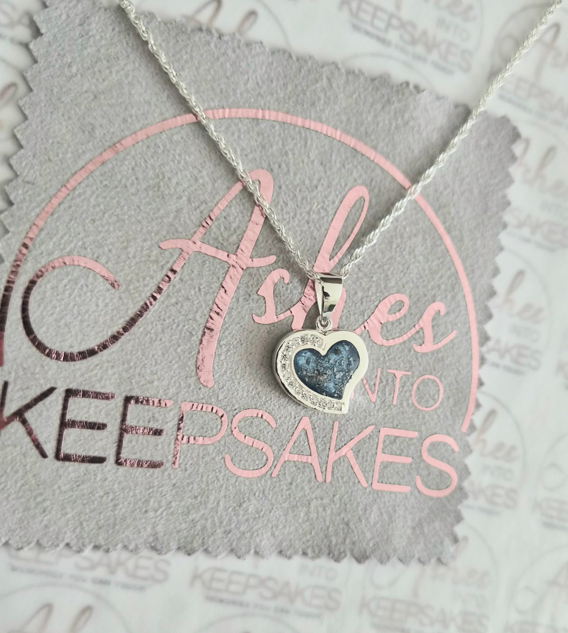 Introducing the memorial Mavis Pendant, a stunning pendant designed to transform ashes into treasured keepsakes, approx stone size 9x10mm. Elevate your jewelry collection with this exquisite piece. These pendants are sterling silver and come with your choice of chain style and length. Choice of colours available and can include your loved ones ashes, hair or pets fur. All items come with authenticity certificate with your loved ones name on and creation date. Add a touch of extra sparkle with the option of real diamond dust added to your jewellery, this is placed in between the layers of the stone and adds a subtle sparkle. We estimate to have all orders hand crafted and shipped out within 3-5 weeks of receiving your ashes or hair. Once order has been placed we will send out a pack for you to send your ashes or hair to us, any unused ashes or hair will be returned to you with your order. Our ashes pendants come packaged in a velvet pouch with a polishing cloth provided, then posted with your chosen postage via royal mail. The completed memorial product will be expertly buffed to create a mirror shine finish, and due to the range of colours we have to choose from no two resin gems are ever the same. Ashes into keepsakes is committed to each one of our customers to provide the best service and care. Your loved ones ashes, hair or even pets fur will be handled with the utmost respect and care, and any unused will be sealed and returned to you with your order.