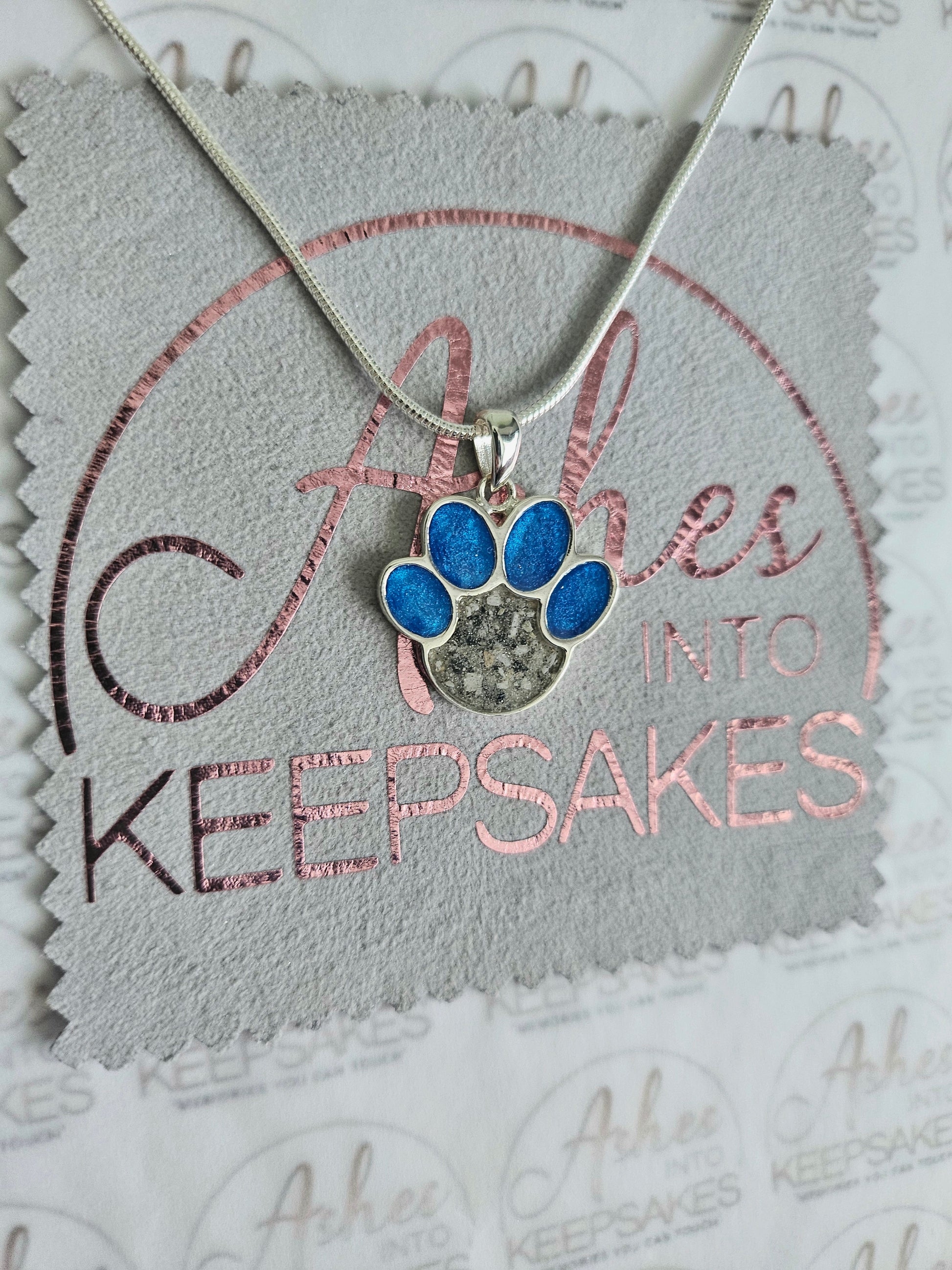 Beautiful pet memorial pendant, paw shaped pendant for pet ashes and fur encapsulated inside a beautiful stone, choice of colours for the toes. Can include your pets ashes, or pets fur or a mix of both. All items come with authenticity certificate with your loved ones name on and creation date. Add a touch of extra sparkle with the option of real diamond dust added to your jewellery, this is placed in the top layer of the stone and adds a subtle sparkle. We estimate to have all orders hand crafted and shipped out within 3-5 weeks of receiving your ashes or hair.